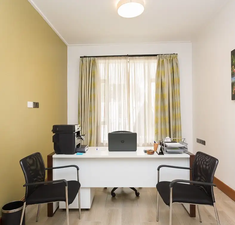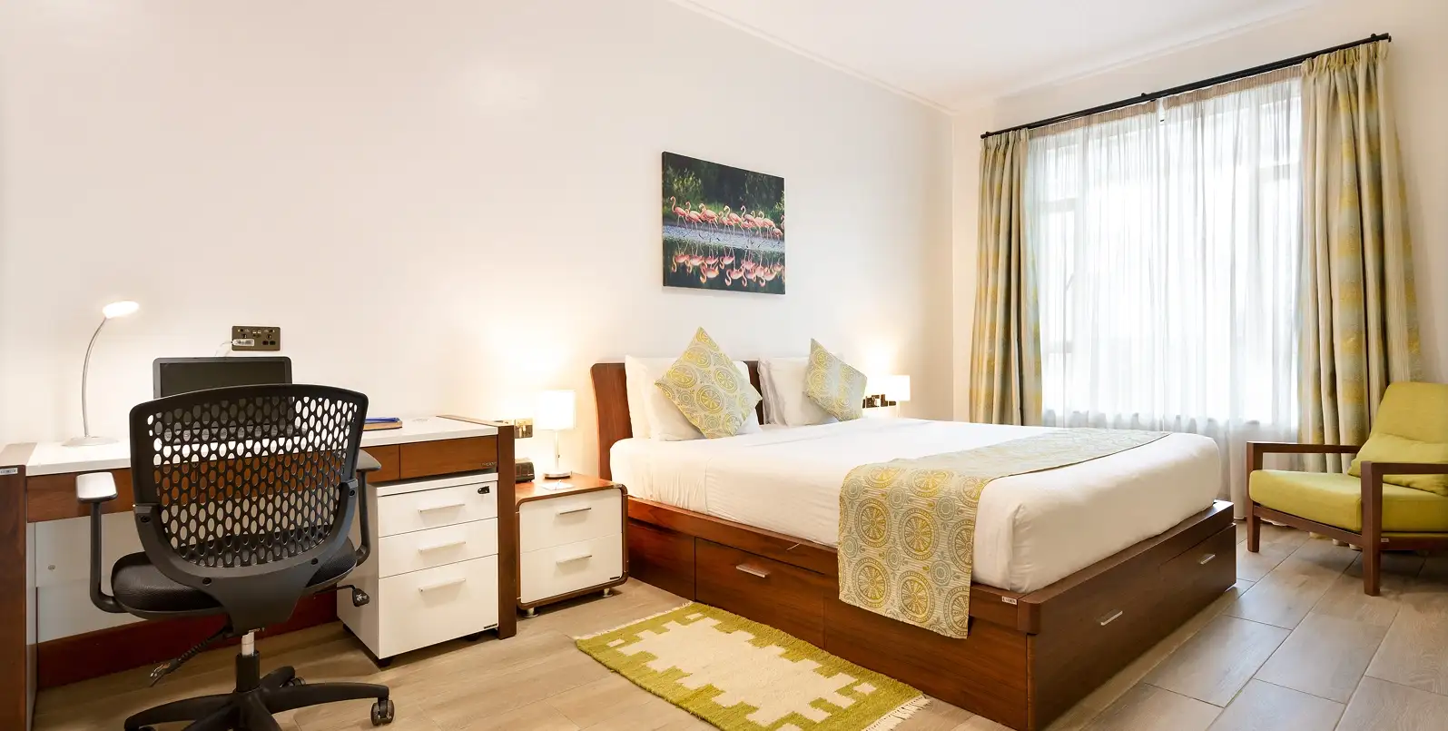 Well suited for solo travellers, couples, and business stays, this apartment brings together convenience, comfort, and flexibility in one thoughtfully arranged space. With a separate living area, ensuite bedroom, dedicated workspace, and a private in-apartment office, it is well suited to guests who need both room to unwind and space to stay focused.